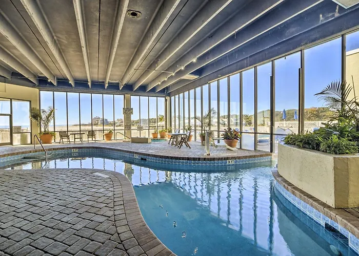 Steps To Ocean! Myrtle Beach Getaway With Balcony apartment offers an equipped kitchen with an oven and a dishwasher as part of self-catering options. The presence of a hot tub and an indoor pool also contributes to a more enjoyable stay. For a relaxing stay, a swimming pool is offered to guests.